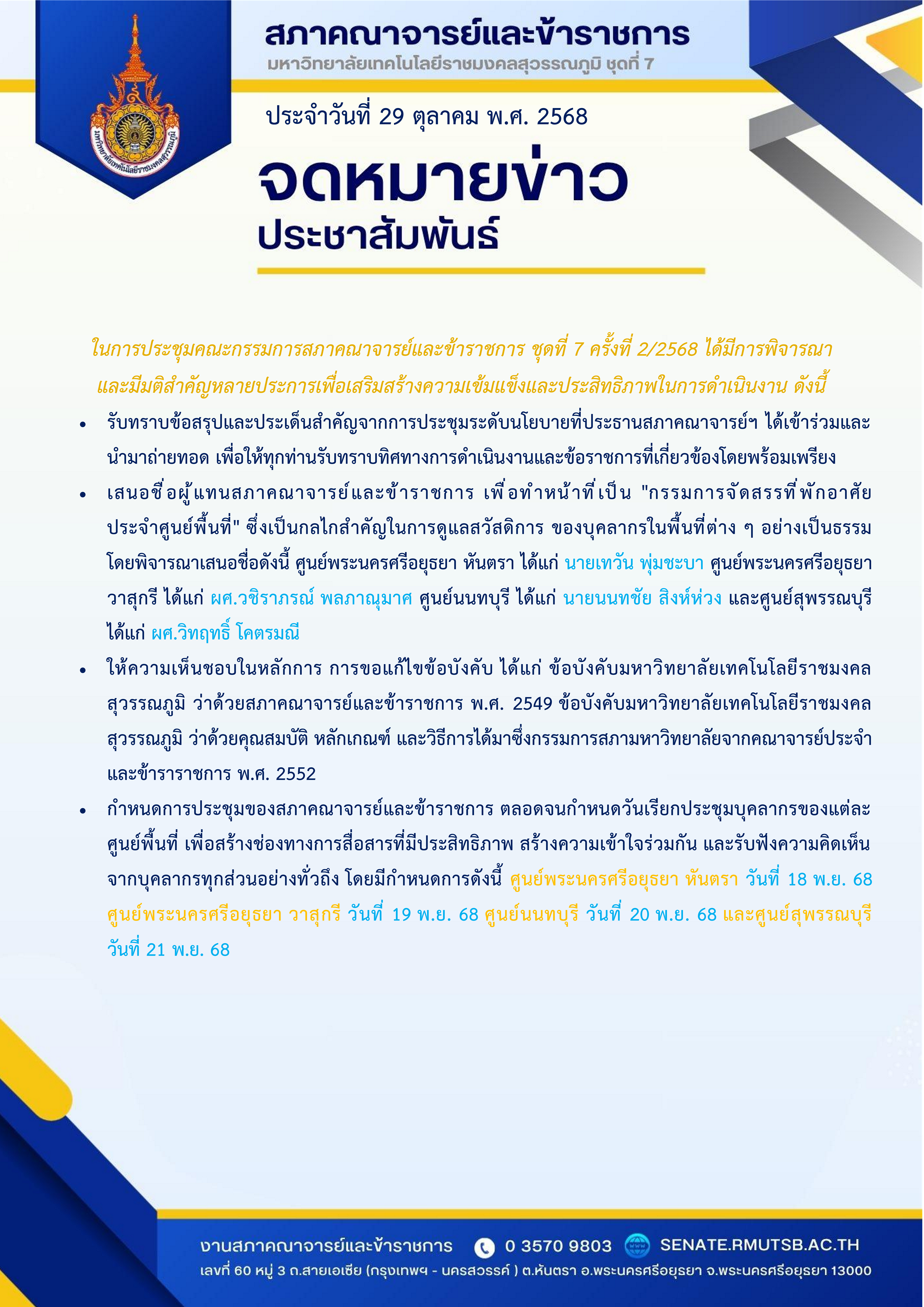 ประชุมสภาคณาจารย์และข้าราชการ ชุดที่ 7 ครั้งที่ 2/2568